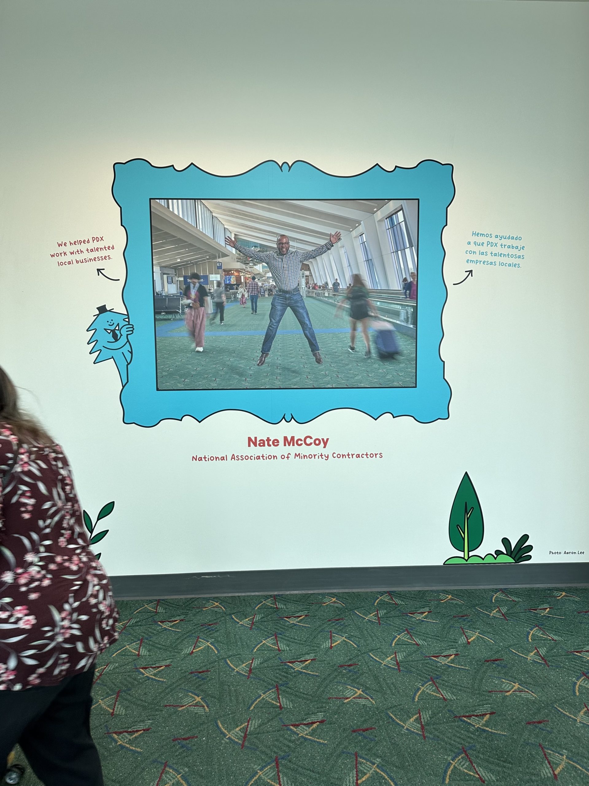 - They could have just told us, they believe in diversity and inclusion, but they didn’t. Instead, they show us. I love NATE jumping in the middle of the terminal (with the iconic PDX carpet) because he represents minority contractors and could successfully bring them in to work on this project.