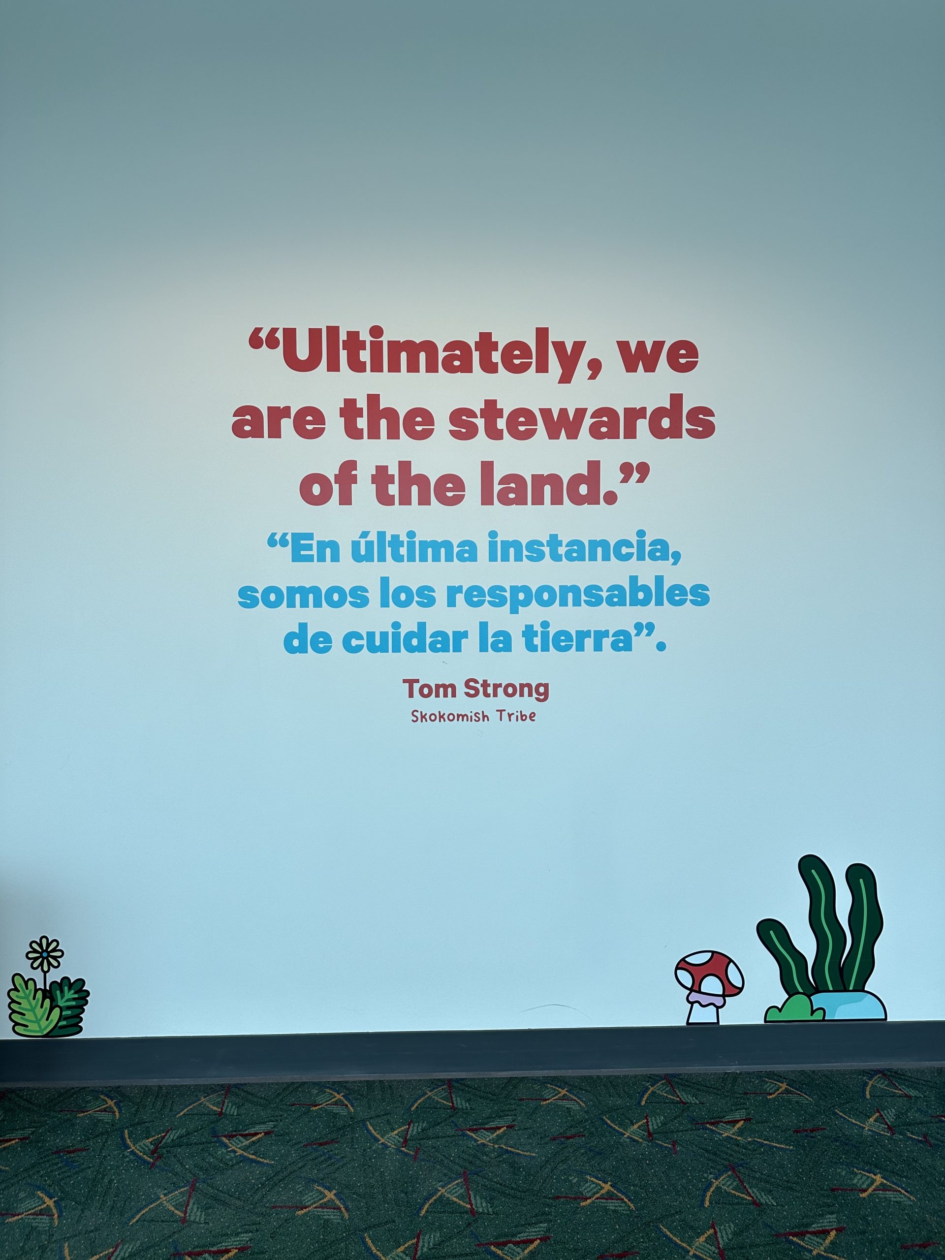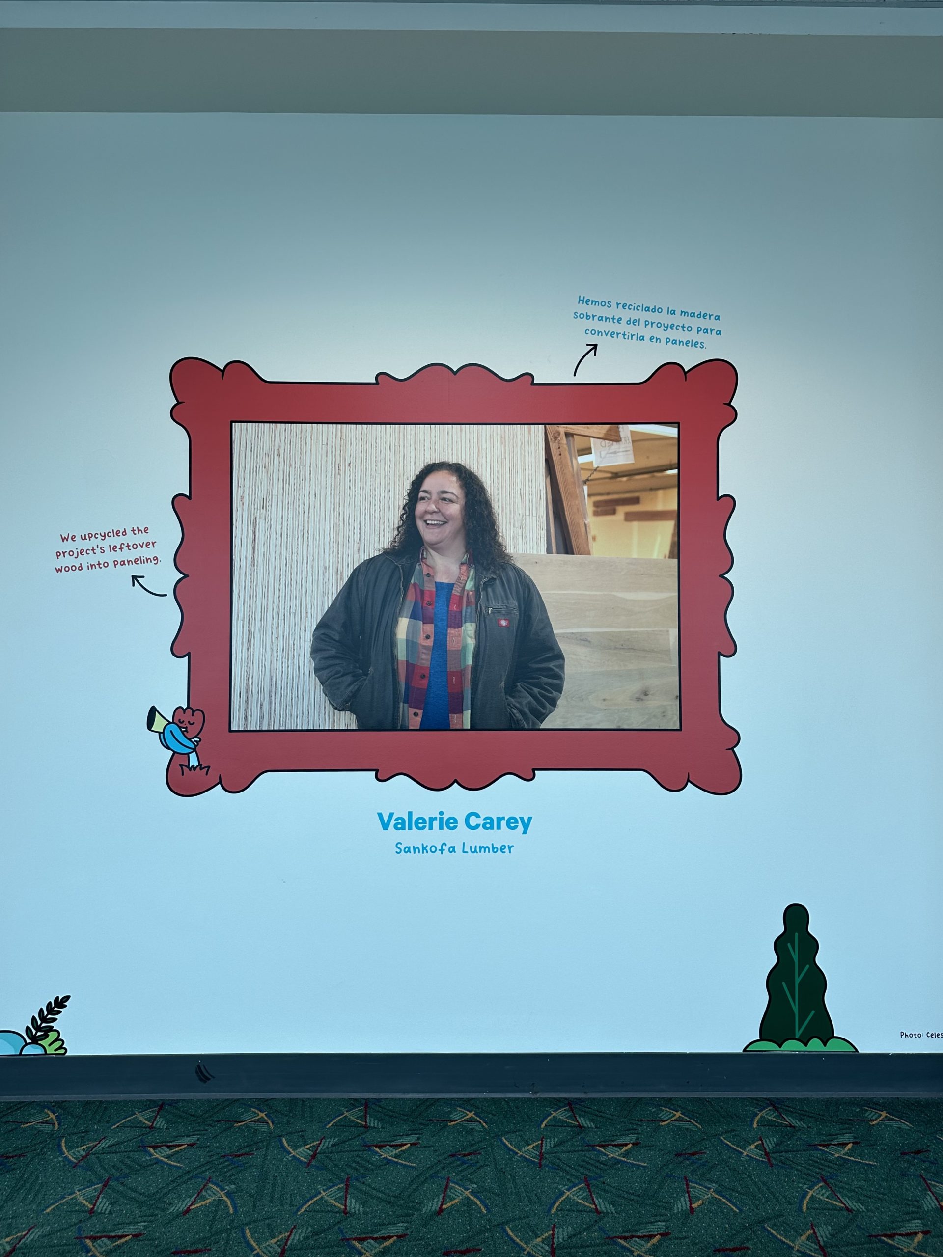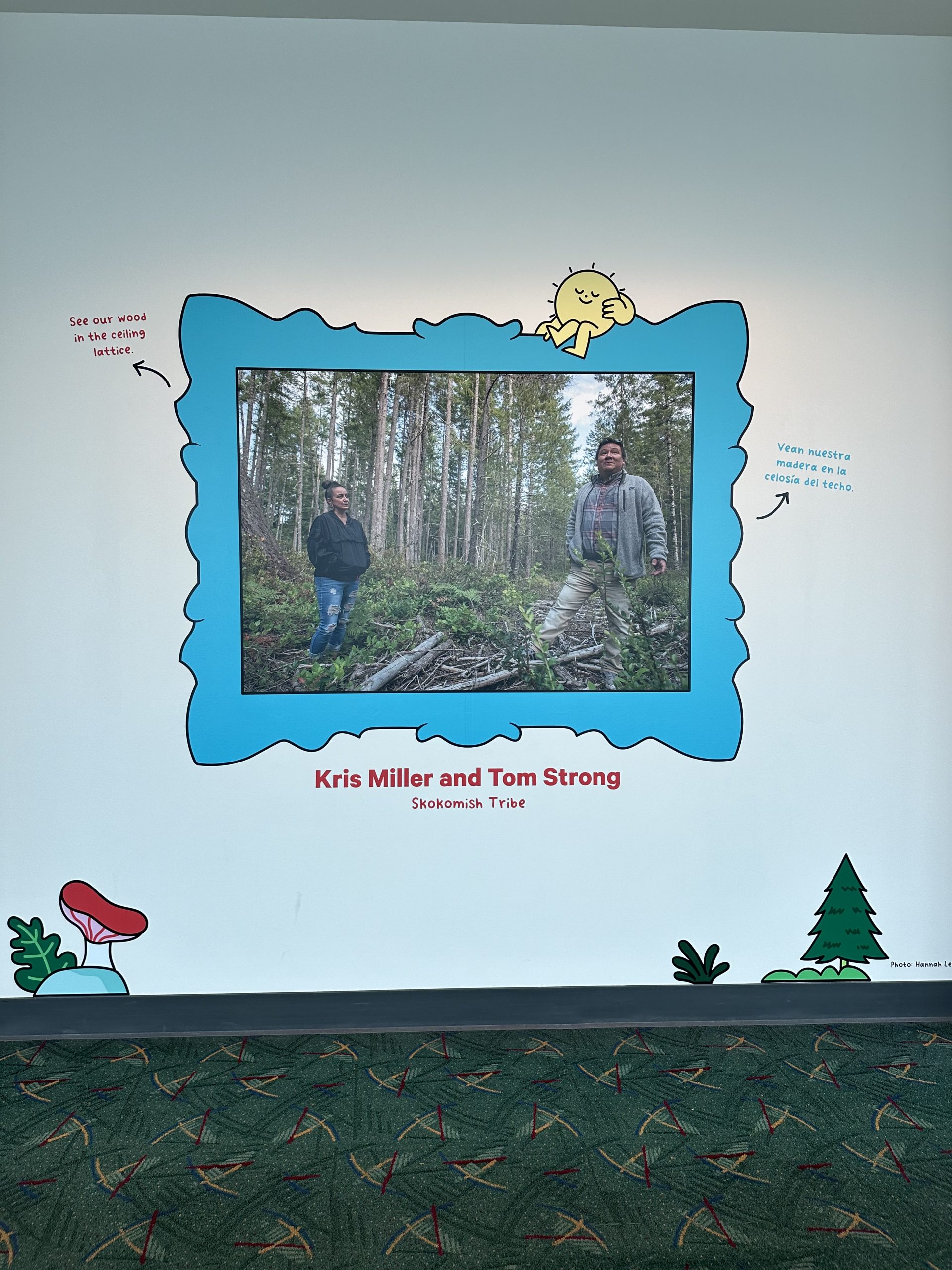 - They could have said, “We only use sustainably harvested wood,” but they didn’t. They show us: Check out Valerie. She put my mind to rest because the wood didn’t get wasted: they used it in the paneling. (construction has so much waste!) Like the couple in the restaurant asking where the chicken comes from, we get to see where the wood comes from – with photos of the people and the forest, explaining that wood can be sustainably sourced and harvested.