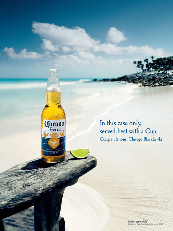 A simple example are the banners we see on buildings during the commute home from work. “If you lived here, you’d be home by now.” The Corona ads come to mind. No people; just photos of the beach with a cold beer and a slice of lime. I want to be in that photo.