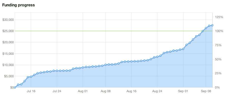 Kickstarter gives you the option to run your campaign from 30 to 60 days. They recommend going shorter. We were nervous so we went longer. Here’s what I suggest: Go shorter but give yourself plenty of time before you launch to plan out #’s 4 and 5 below. We just started immediately and shot from the hip along the way. In hindsight, I’m happy we went for the 60 days because it gave us time in the middle to figure out the grand finale, and the content sharing strategy, and the communication strategy. We had a lull in the middle 30 days. Check out this graph to see progress. Spikes at the beginning and spikes again at the end. Go short, but have everything planned out before you launch.