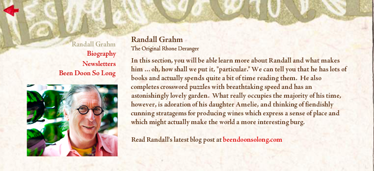Clearly Randall Grahm is a fascinating character with loads of personality. He might have employed a great writer (unless he writes it himself) who is able to translate his ideas to compelling web copy.