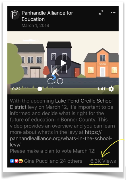 Our animated video (linked in first bullet point above) on school funding received 6700 views. In a community of 10,000 people, we considered this a huge win. For an initiative that passed by 222 votes, we’ll take some credit.