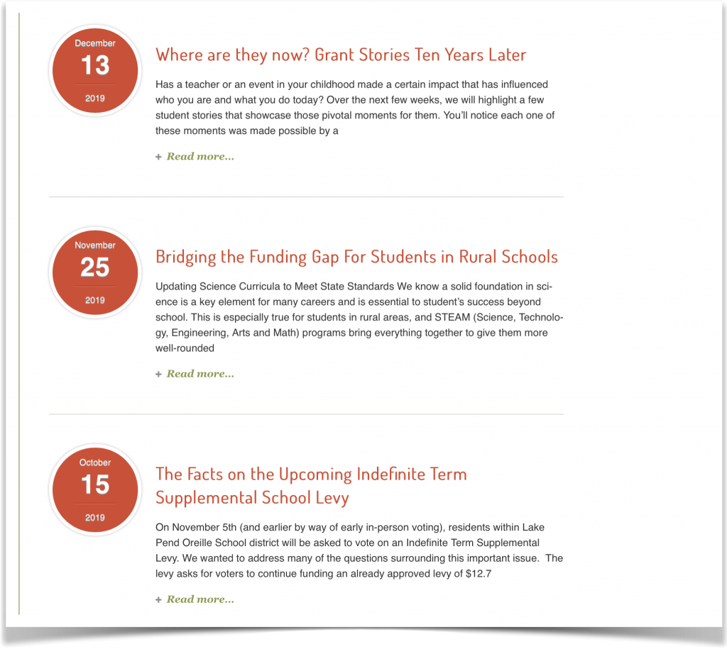 - Used the Annual Report as a prime opportunity to tell the stories of students who benefitted from grant programs. See 2019 Annual Report
