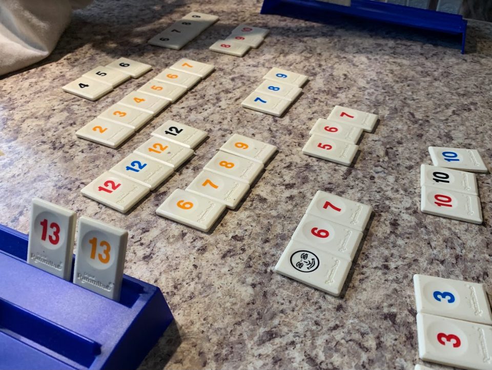I play Rummikub with Patrick a lot. And one of my goals is to surprise and beat him by holding all my tiles and going out at once. This is a fun strategy because it could mean he would have a ton of points in his hand, and the object, of course, is not to get points. To achieve this goal, I have to plan my runs and groups appropriately. So I set them aside instead of laying them on the table. As I pick up more tiles, I add them to existing runs. In reality, this strategy rarely works because it commits me to preconceived runs/sequences rather than adapting as I get new tiles. If instead, I break the pattern and start putting them down on the table, I get to my goal quicker. (And beat his ass)