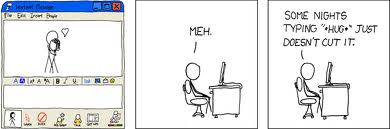 We debate the definition of sausage on skype chat. We have a dinner war on facebook, we kiss each other goodnight on facetime. We say good morning every single morning via text. Sometimes, we even video skype and work, without talking. It just makes us feel together.