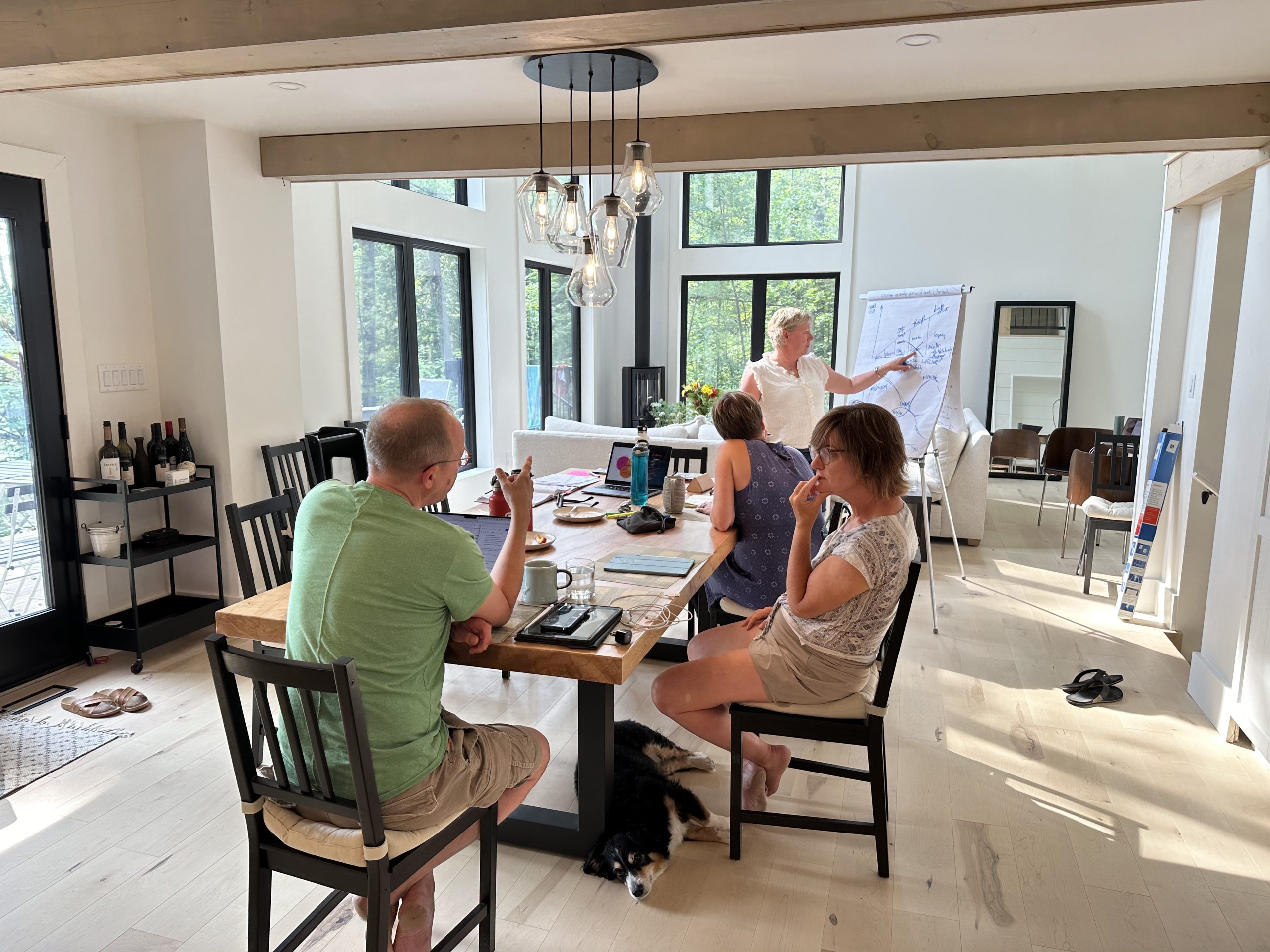 These are my people. The School meme is “We come for the curriculum, and we stay for the community.” I’ve just returned from a work retreat where a small group of us self-organized and gathered in Muskoka Lakes in Ontario to learn, plan, and work through questions we each have in our practices. In helping each other, we all learn. We also swam, ate, and boated into town for ice cream.
