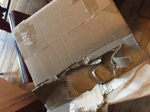 Then the containers arrived. And, the package took me a half hour to open. I had to actually cut through the cardboard because it was glued shut, not taped shut. Here’s is a photo I took in the midst of my “unboxing frustration,” when I took a break to catch my breath and let my poor fingers get some rest: