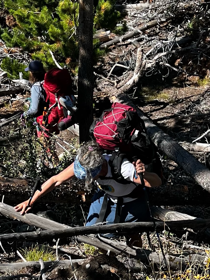 Resilience in the face of uncertainty starts with awareness of where you are on the time continuum. It starts with awareness but resolves through action. Climb over this tree, go under this tree, one tree at a time. We made it to the trail, and I kissed the dirt. I was so happy. (No one documented)